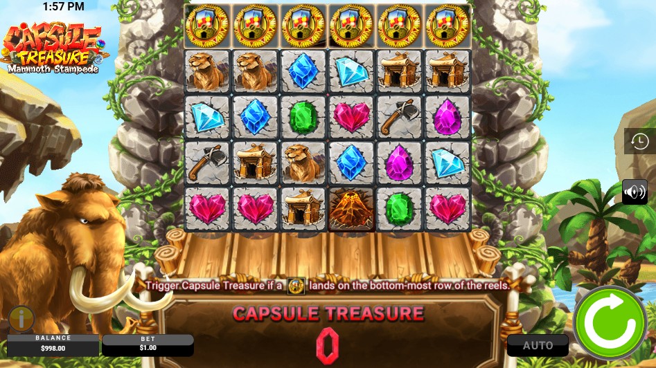 In Capsule Treasure Mammoth Stampede, players will find a traditional five-reel, three-row layout with 25 paylines. The gameplay is straightforward and easy to understand, making it suitable for both novice and experienced slot players. To win, players must land matching symbols on a payline from left to right. Wild symbols can substitute for other symbols to help create winning combinations, increasing the chances of a big win.